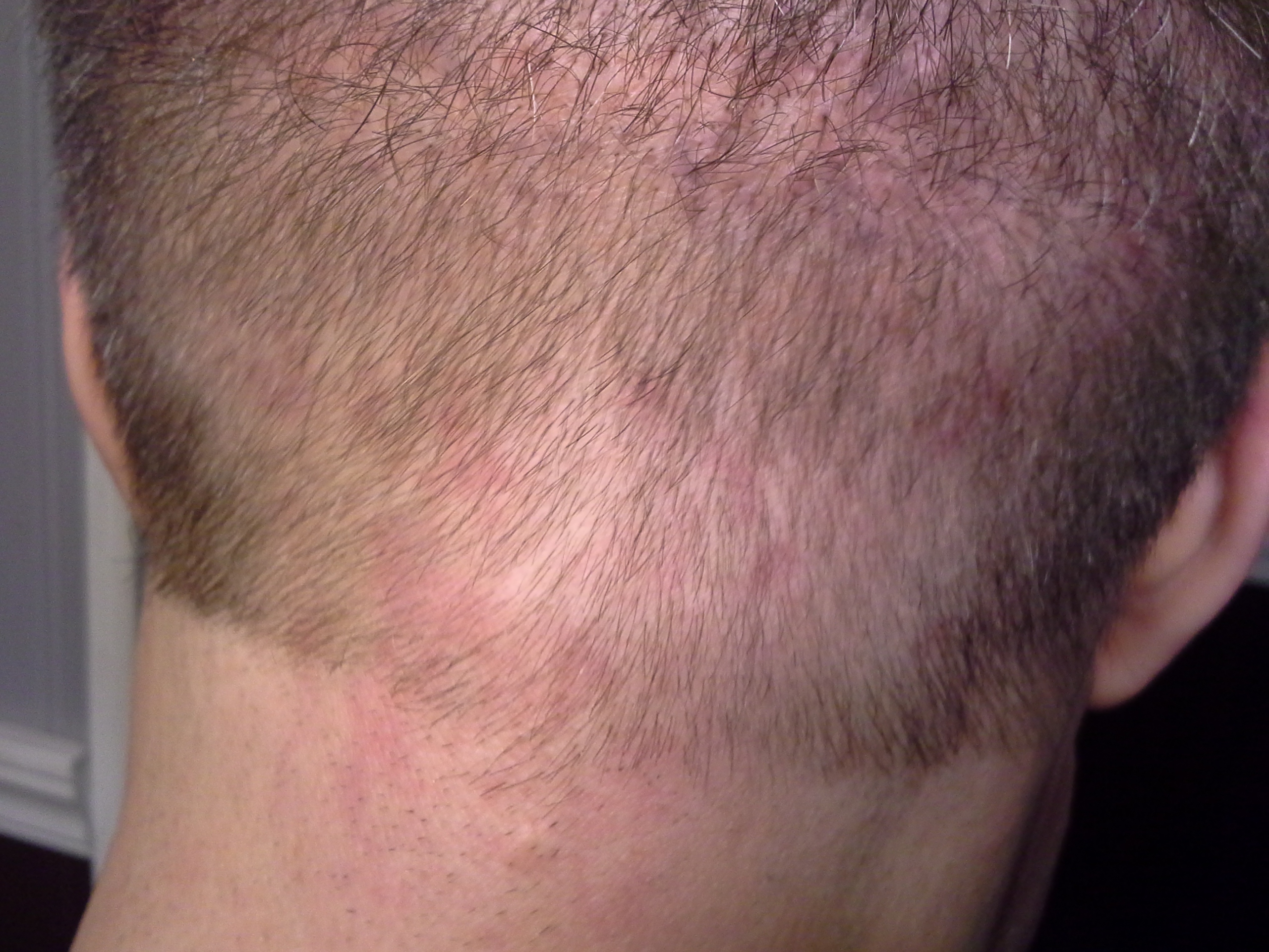 The advantage is that after the scar has been camouflaged, you can wear your hair long or buzz it!